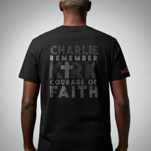 Remembered for his Courage Of Faith. This limited-edition tribute tee celebrates Charlie Kirk’s fearless voice for faith, conservative values and